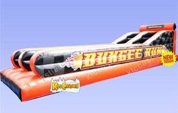 Bungee Run Dimensions: Length: 10.6m (35'0") Width: 3.1m (10'2") Height: 2.3m (7'5") Actual floor area needed, length 14m (46'0") x width 4m (13'2") This area includes space for unit/fan and crash mats. The fan is positioned to the rear on this unit.