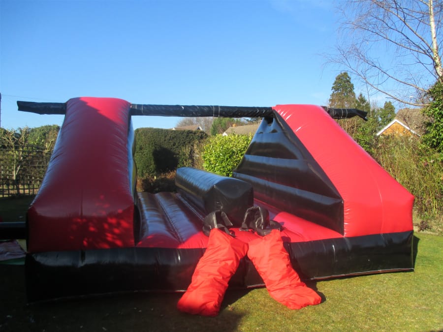 Dimensions; Length: 4.6m (15'.0") Width: 4.3m (14'2") Height: 2.3m (7'.5") Actual floor area needed, length 7m (23'0") x width 6.4m (21'0") This area includes space for unit/fan and crash mats. The fan is positioned to the side on this unit.