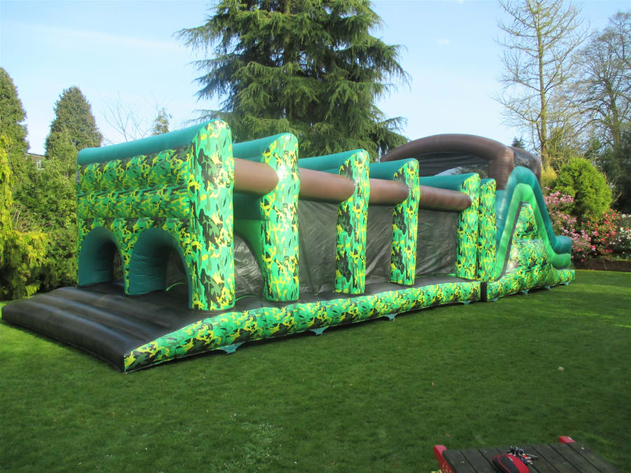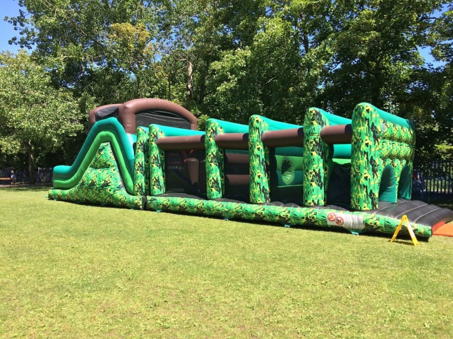 Our Giant 50ft Army obstacle course is the ultimate multi play inflatable. This is a great attraction at any event and children big and small love the challenge it provides. It is sure to leave you breathless by the time you make it to the end for the 8ft high slide! Our Army is ideal for village fetes, fun days, school fairs and holiday camps, private parties and charity events.