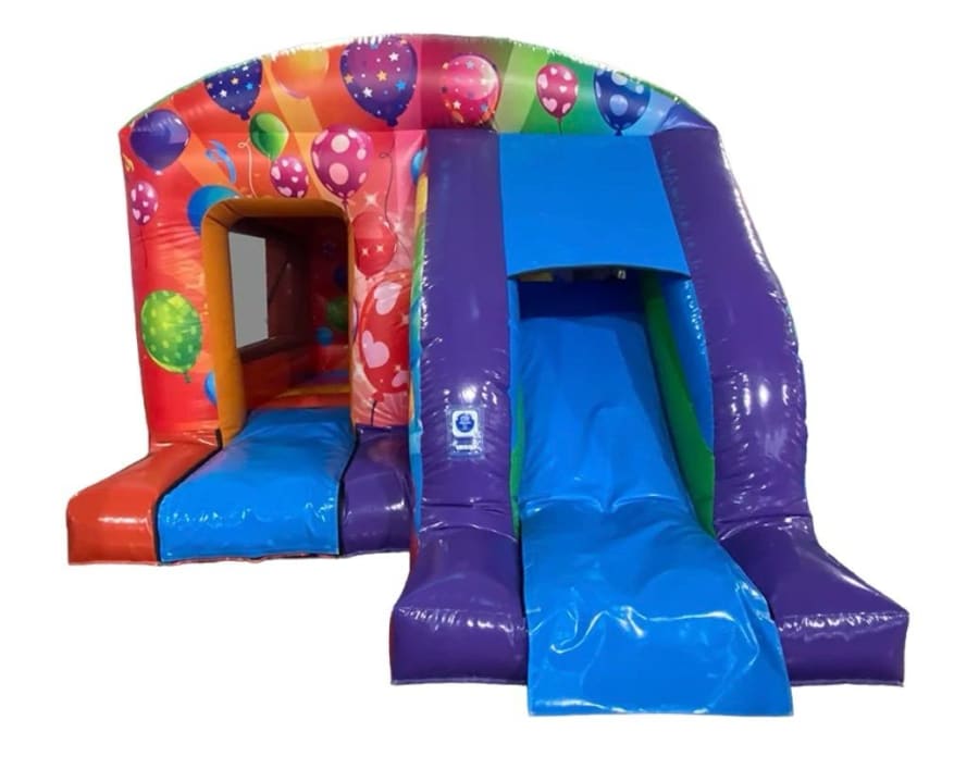 Designed with bright, multicolour party themes and cheerful balloon artwork, this inflatable instantly creates a fun-filled atmosphere kids will be drawn to. The spacious bouncing area offers plenty of room to play, while the built-in slide adds an extra layer of thrill as children climb up and swoosh down again and again.