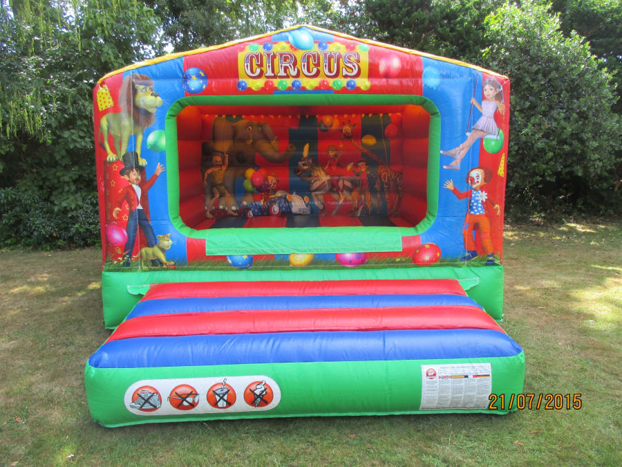 Hire our Circus theme box bouncy castle. This low height castle is perfect for indoor hall hire.