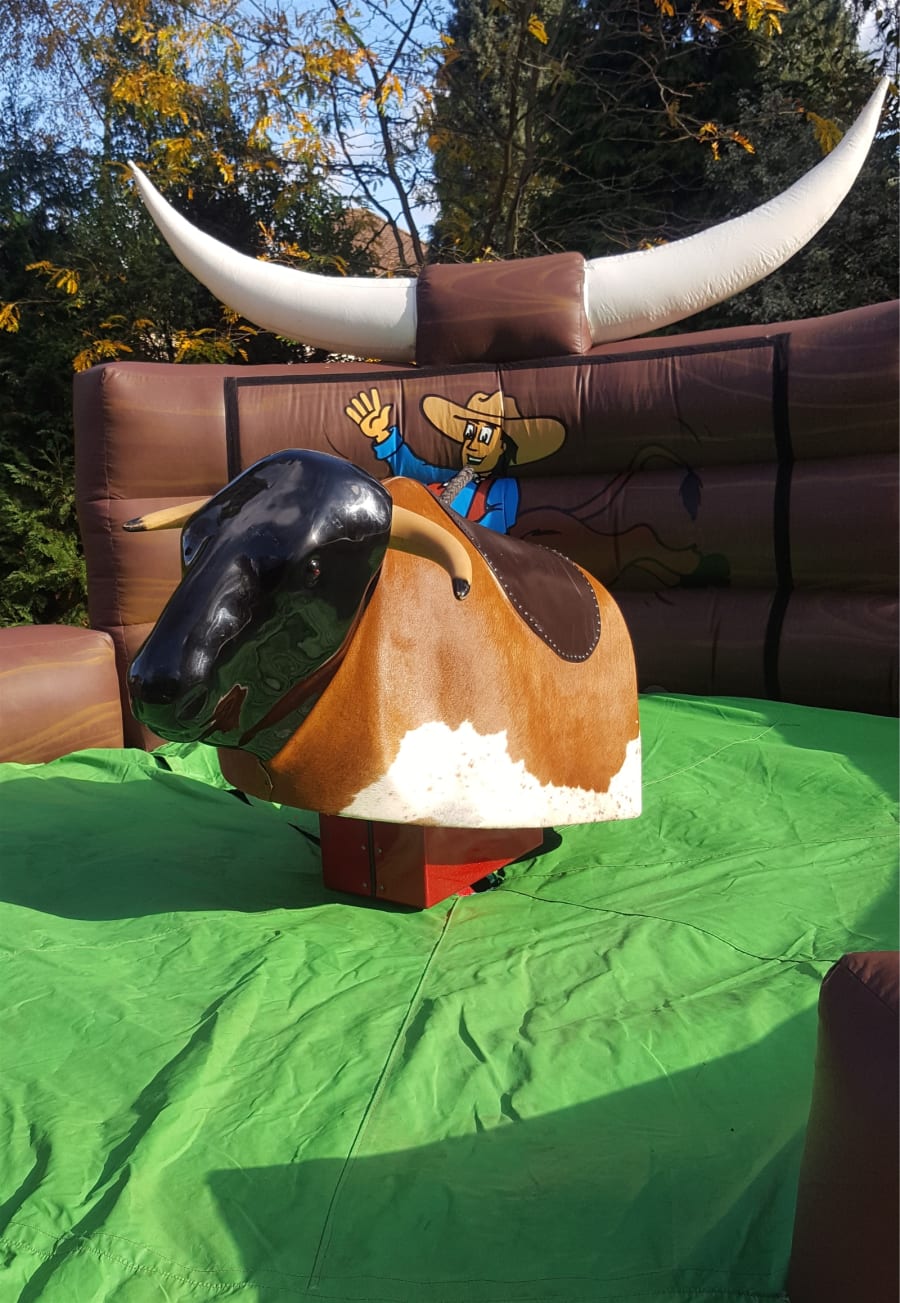 Available to be run either manually for younger age groups or set for competition with an LED display showing the current rodeo bull rider's time and the rodeo bull's overall leading rider. Our bull is supplied with real cowhide, soft horns for safety and a western rodeo bull corral steer horned 15ft diameter soft bed and surround to give the complete western effect!